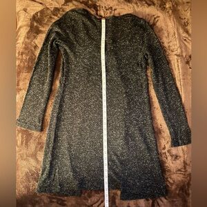 Vintage inspired charcoal duster with soft white cashmere type threads running throughout. Features a stylish tie-front detail. Perfect for layering and versatile wear.