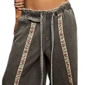 Stylish wide-leg Black pants featuring a floral trim. Comfortable and chic design.
