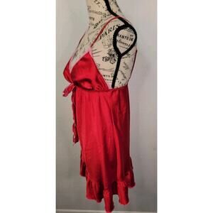 Victorias Secret Angels RED Babydoll Mini Dress S Bow Lace Trim Milkmaid Fairy