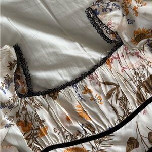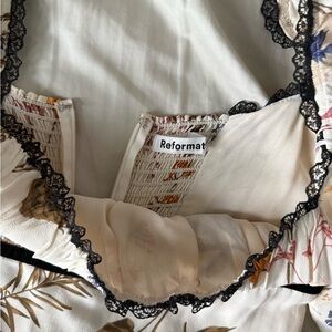 Reformation Floral Dress with Black Lace Trim
