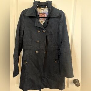 Juicy Couture Dark Navy Double-Breasted Ruffle Collar Military/Pea Coat Size M