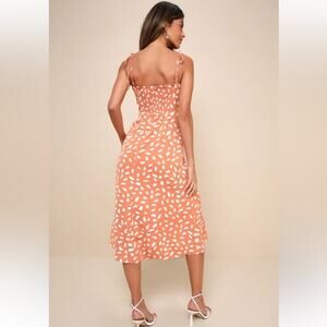 Lulus Party In Paris Light Orange Print Tie-strap Midi Dress - Size XS