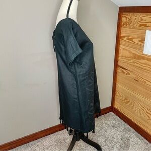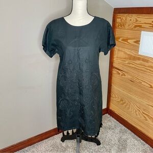 Madewell Black Linen Blend Embroidered Floral Tassel Shift Dress Extra Small