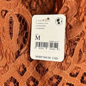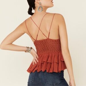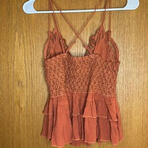 Free People ADELLA Winding Roads Rust Color Ruffle & Lace Camisole