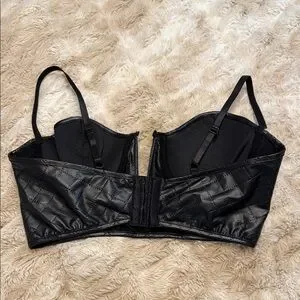 Eliza Kate Vegan Leather black quilted bra set. Features structured cups and adjustable straps. Stylish and comfortable. NWOT in a Medium !