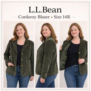 L.L. Bean Olive Corduroy Blazer Jacket • Size 14R