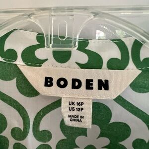 Boden Green and White Long Sleeve Dress