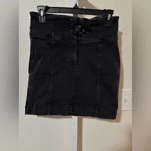 Sleek black pencil skirt with lace-up front. Stylish and versatile. Perfect for any occasion.