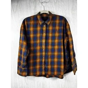 Madewell Westward flannel shirt in excellent pre-owned condition. This women's size XL shirt features the sought-after Ardan plaid in warm tones, crafted from 100% cotton flannel with a relaxed, slightly cropped fit.