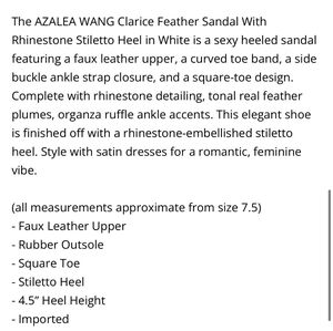 NIB AZALEA WANG CLARICE FEATHER Sandal Rhinestone Stiletto Heel White Sz 10 Prom