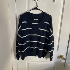 American Eagle Outfitters Navy and White V-Neck Sweater