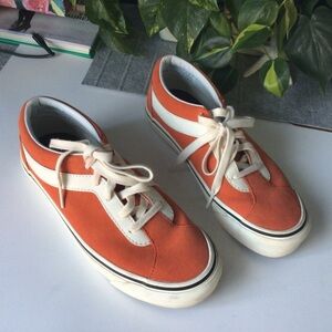 Stylish orange suede sneakers with white accents. Perfect for casual wear. In good prelove condition
