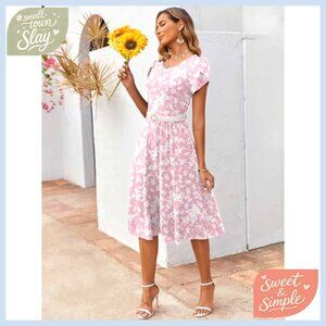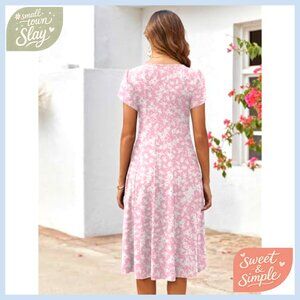 Short Sleeve Midi Dress Flowy A-Line Casual Summer Sundress with Pockets