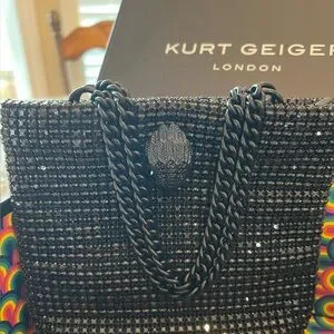 Kurt Geiger Black Sparkle Bag with chain handles.