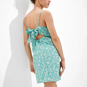 American Eagle AE Floral Tie-Back Mini Dress Mint Size S Festival Boho Coastal