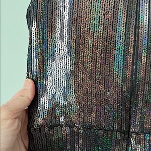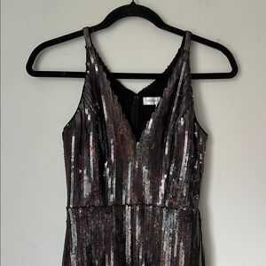 This brand retails high ($200+ range for similar sequin styles) and is known for elevated, red-carpet inspired silhouettes.