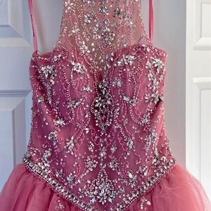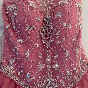 Stunning pink gown with intricate embellishments. Ideal for special events.