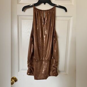 Elegant tank top with a shimmering finish. Perfect for casual or evening wear. Lightweight and stylish.