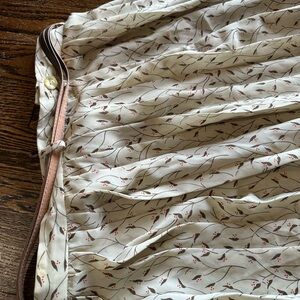 Discover elegance with this cream A-line skirt, featuring a delicate pattern that enhances any wardrobe. Small spot shown that may come out with a good wash . Not very visible