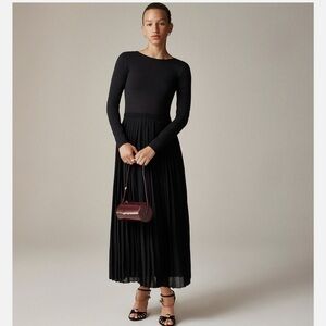New JCrew Sz XS Pleated Ballet Maxi Dress Stretch Cotton Long Sleeve Black