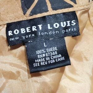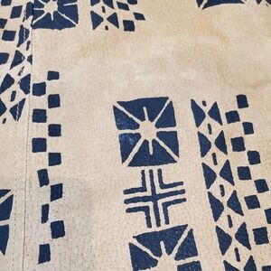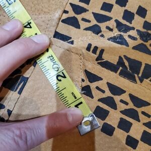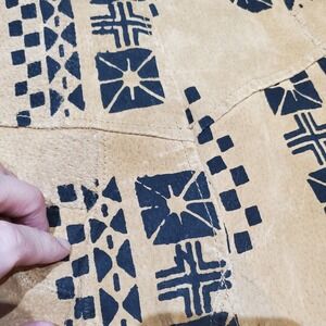 Condition: Pre-owned good vintage condition. Note some minor surface wear and natural variations in the leather typical of vintage or artisanal suede pieces and hand-applied print. One small tear about 1/2 inch shown in photos.