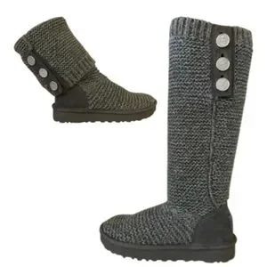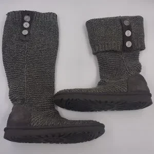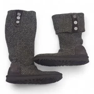 UGG Sweater Knit Foldover Boot Classic Grey Silver Warm Boho Casual Slouchy 8