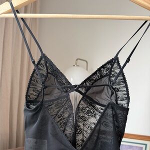 #tags: #lacebodysuit #floralembroidery #eveninglook #layeringpiece #femininetop