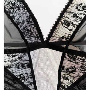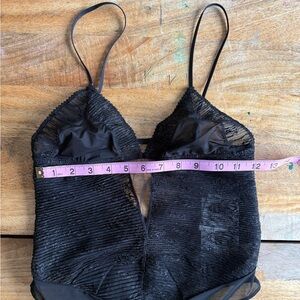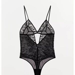 Pleated Lace Bodysuit with Floral Embroidery, Black, Zara, M, NWT