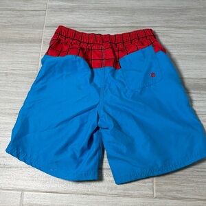 Vibrant Spider-Man shorts with red and blue design. Perfect for young fans. Comfortable fit. Purchased directly from Disney, Marvel Spider-Man Red and Blue Kids Swim Shorts in size 7/8 bathing suit. My son wore only a couple of times. Elastic waist. Lined.