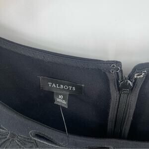 TALBOTS Dress Size 10 Bow Embroidered Cut Out Velvet Ponte Knit A-Line NWT Black