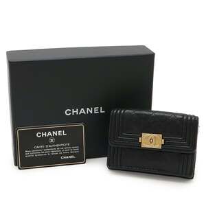 CHANEL Authentic Black Caviar Leather Logo Wallet