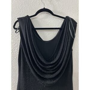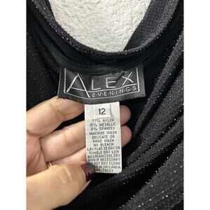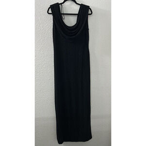 VTG Alex Evenings Cowl Neck Maxi Dress Womens 12 Black Metallic Gown Y2K Gothic