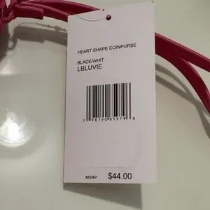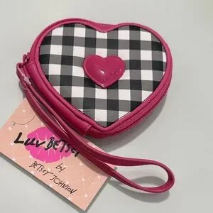 Chic heart-shaped wristlet, coin purse. 4 card slots inside with adorable fabric. Black and white checkered design. Pink trim with heart accent.