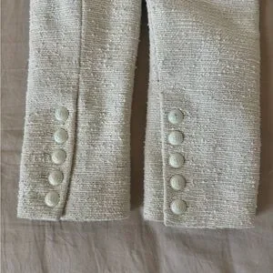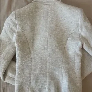 Elegant white blazer with a textured design, new with no signs of wear. Sold out on Revolve. Features double-breasted buttons and notched lapels. Ideal for a chic ensemble.