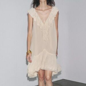 Ruffled Lace Dress ZW Collection, Ecru, Zara, M, NWT