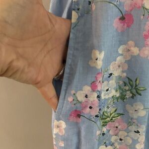 J. Jill Watercolor Light Blue Floral Linen Dress
