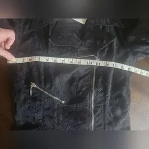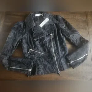 NWT Anne Fontaine Black Floral Zipper Moto Jacket Sz Small
