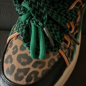 Step out in style with these vibrant women's sneakers featuring a bold leopard print and striking green accents. Perfect for adding a pop of color to any outfit.