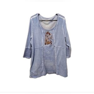 Soft Surroundings Coastal Blue Bohemian Tunic 1x Cottage Lagenlook Silk & Cotton