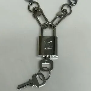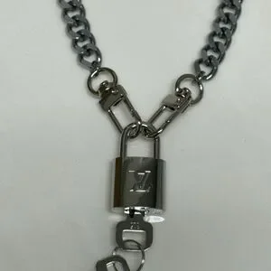Silver Louis Vuitton lock-n-key set with unbranded 18" silver plated chain.