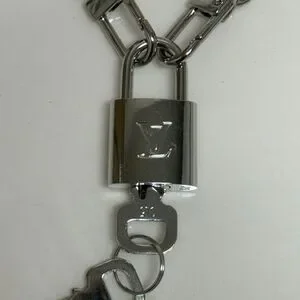 This bold and unique 18 inch necklace includes an authentic Louis Vuitton lock-n-key set.