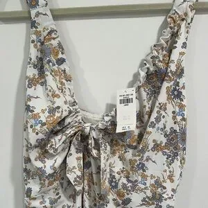 Chic floral sleeveless dress with a bow detail. Perfect for casual outings.