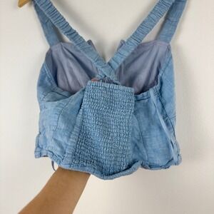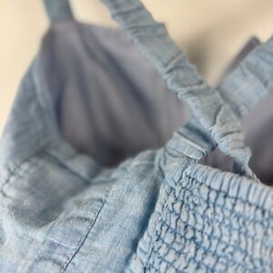 Anthropologie Linen Utility Corset Top Blue Smocked Bib Cropped Square Neck S