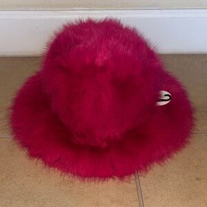 Luxurious and soft faux fur hat in a vibrant pink color Perfect for adding a pop of color to any outfit.