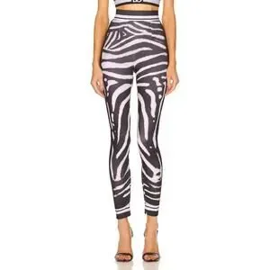 Slim-fit stretch leggings with a bold black and white zebra print, featuring an elastic high-rise waistband and full-length legs.