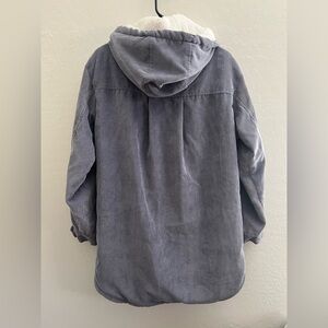 Cozy corduroy jacket with soft lining. Features a hood and stylish design.
