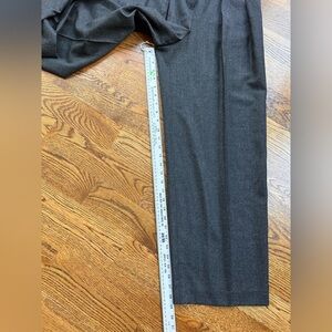 Theory Double Pleat Pant Sleek Virgin Wool Flannel Charcoal Gray Size 4 Wide Leg