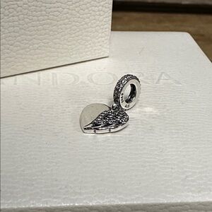 Pandora great shape Heart and angel wings sterling silver 925 ale stamped charm