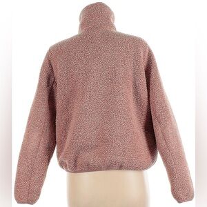 Stay cozy and stylish with this pink fleece jacket. Perfect for layering, it offers warmth and comfort for any casual outing.