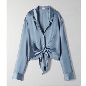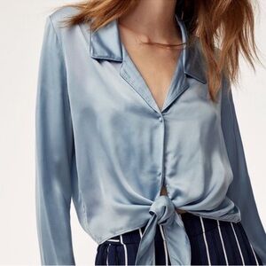 Wilfred by Aritzia Tie-Front Satin Blouse – Granite Blue – Size Small – NWT